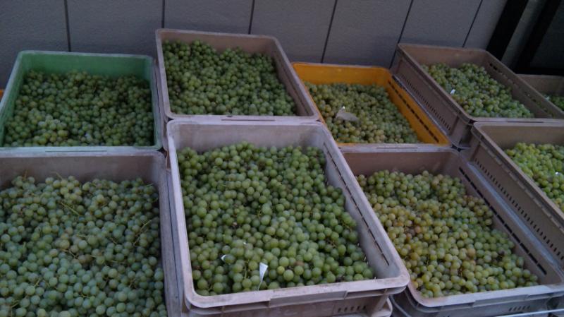 今日は凄い芳香を放つぶどうナイアガラで、約2トンの仕込みを行ないました。このナイアガラは果皮がやっこい為、あんまりギッギッって搾っと澱が多くなります。んだもんだがら、プレス機の搾りの調整を軽〜く設定します。