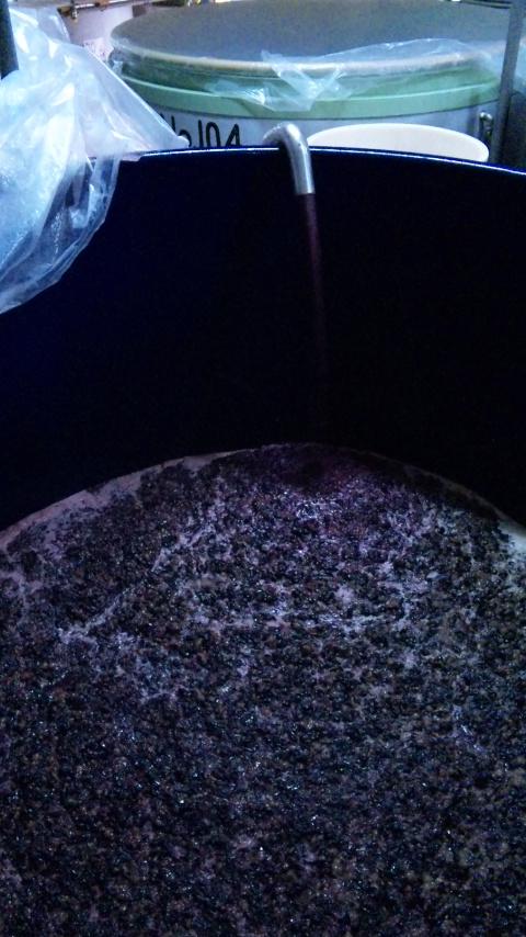 今日はマスカット・ベリーAに関しては最後のワイン仕込み。ベリーAは4回ほど仕込みして約20トン。そのうち今日は5トンを破砕してタンクへ。