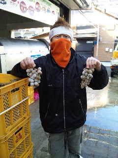 冷凍庫よりトラックで運搬。−20度で凍っているので、石みたく硬いです。