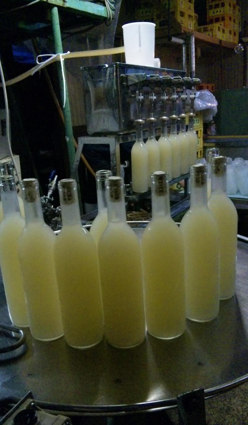 今日は、この冬3回目の『美白濁』の充填。にごった白ワインの色と、フロスト加工のボトルの色が合います。毎回にごり具合が均等になるように、気をつけて瓶詰めしてます。