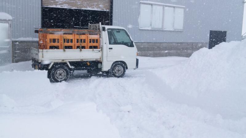 愛用のYAMAHA除雪機で、貯蔵庫の前を除雪作業。やっと軽トラを入れて、ワインの運搬。他の季節は、スーッとトラックで行げるんだげんと、冬は雪を片付けてからなので時間がかかります(+_+) 今年の雪は特に大変。