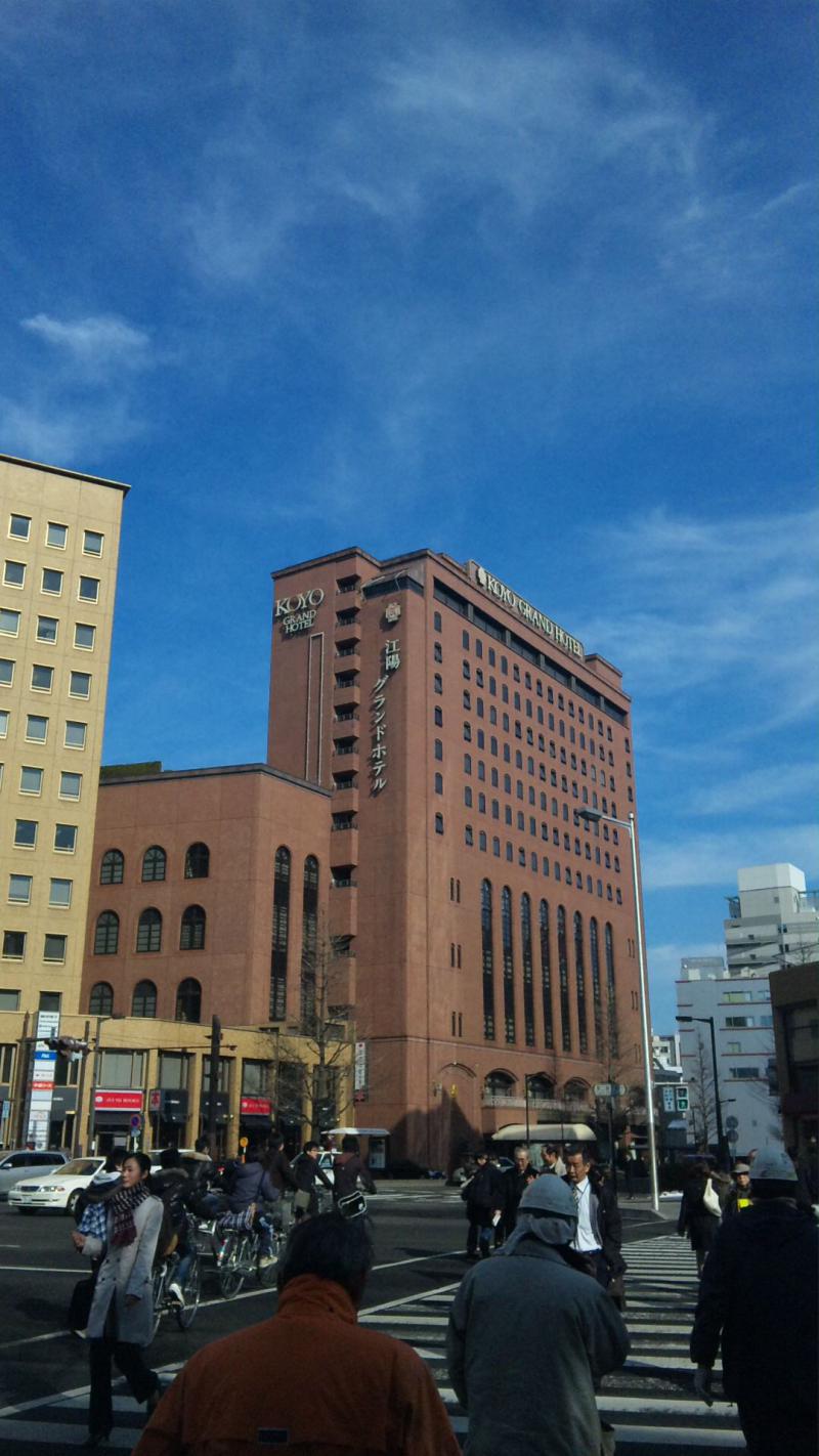 1日、2日の2日間、『食の発掘商談会in仙台』におらいで加盟している「おしんすもも会」で参加しました(担当は武田庄二商店福田部長さんとオラで)。場所は江陽グランドホテル(画像)にて。仙台は寒いげんと晴天でした。