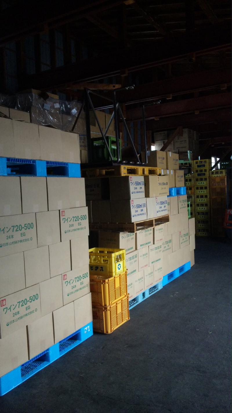 貯蔵庫と倉庫の安全確認に行きました。やっぱり瓶物扱う仕事だから、割れっと大変でよぉ。ワインとジュースの貯蔵庫確認して、空瓶置いった倉庫ば点検しったら、いきなり激しい揺れが。シャッター、ガダガダ音たてて、積んでた空瓶やコンテナもけっこうグラグラいってだっけげんと、大丈夫でした。