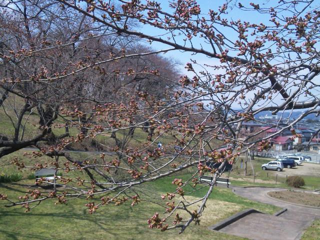 例年、この時期が満開になってる頃だげんと、今年はまだ蕾が赤くなった程度。満開はゴールデンウィーク中になりそうです。昨日は日曜で、通常だと桜まつり開催中一番賑わう日だげんと、震災の影響で大型バスで遠方からの花見客がいなく、一般の方がほとんど。花が咲くと、もっと賑わうと思いますが。