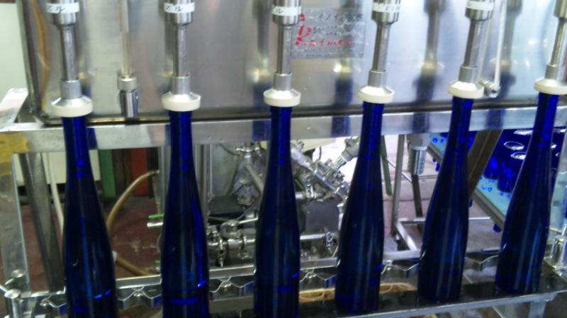 今まで『アイスナイアガラ』という甘口ワインがあったげんと、より濃厚で優雅な甘さのワインを目指し、アイスナイアガラのバージョンアップの『アイススウィートナイアガラ』を昨年の仕込み、この度瓶詰めしました。氷結によって、今まで以上にナイアガラの果汁の糖度を高めて造りました。ナイアガラの芳香と、蜂蜜のような甘さが感じられるワインです。375mlのモーゼルタイプ(フルート型)のブルーのおしゃれな瓶に詰めました。コルカー(コルク打栓機)が終盤故障してしまってよぉ、後半昔使っていた手動式の打栓機で詰めました。けっこう大変でした(*_*;