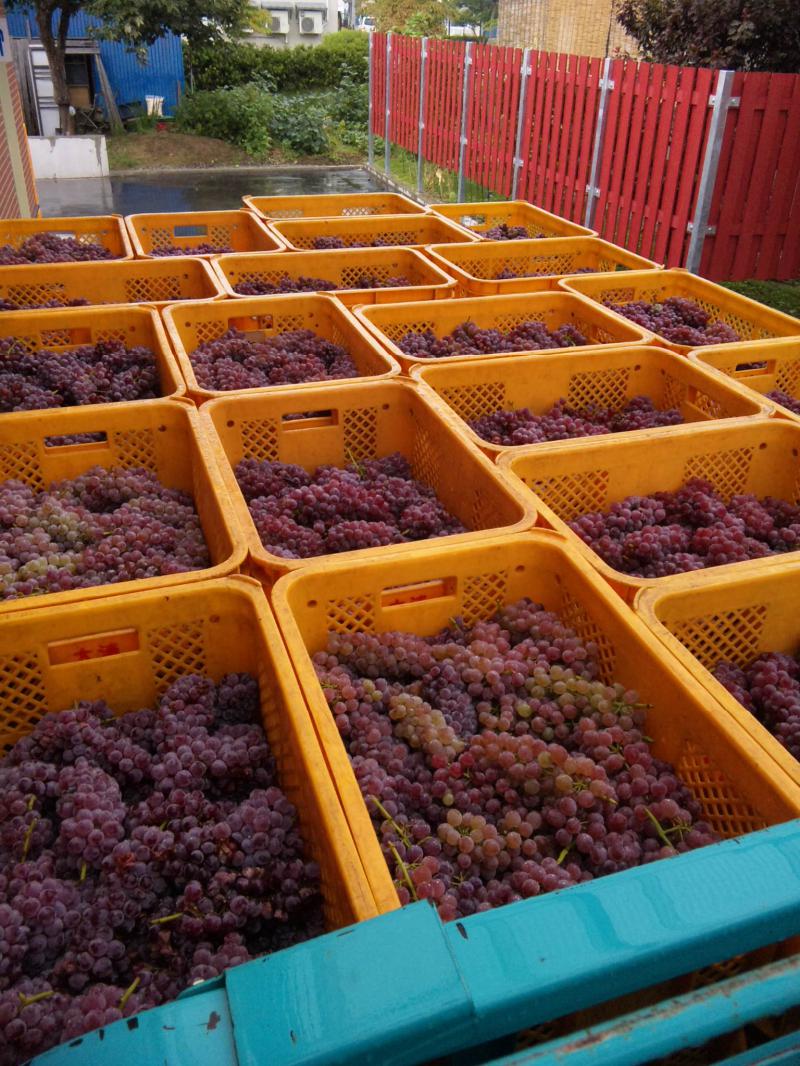 今年のデラは天候が良かったおかげで生食用での出荷が多く、加工用(ワイン屋等にまわってくるもの)が少ない年でワイン用に確保するのにけっこう大変な年でした。昨年は猛暑の影響で高温障害のデラが多かったり、一昨年は盆過ぎの雨で実割れが出たりして加工用が余計だったげんと、デラに関しては他の品種よりも天候に左右されやすい品種だなぁと改めて思いました。