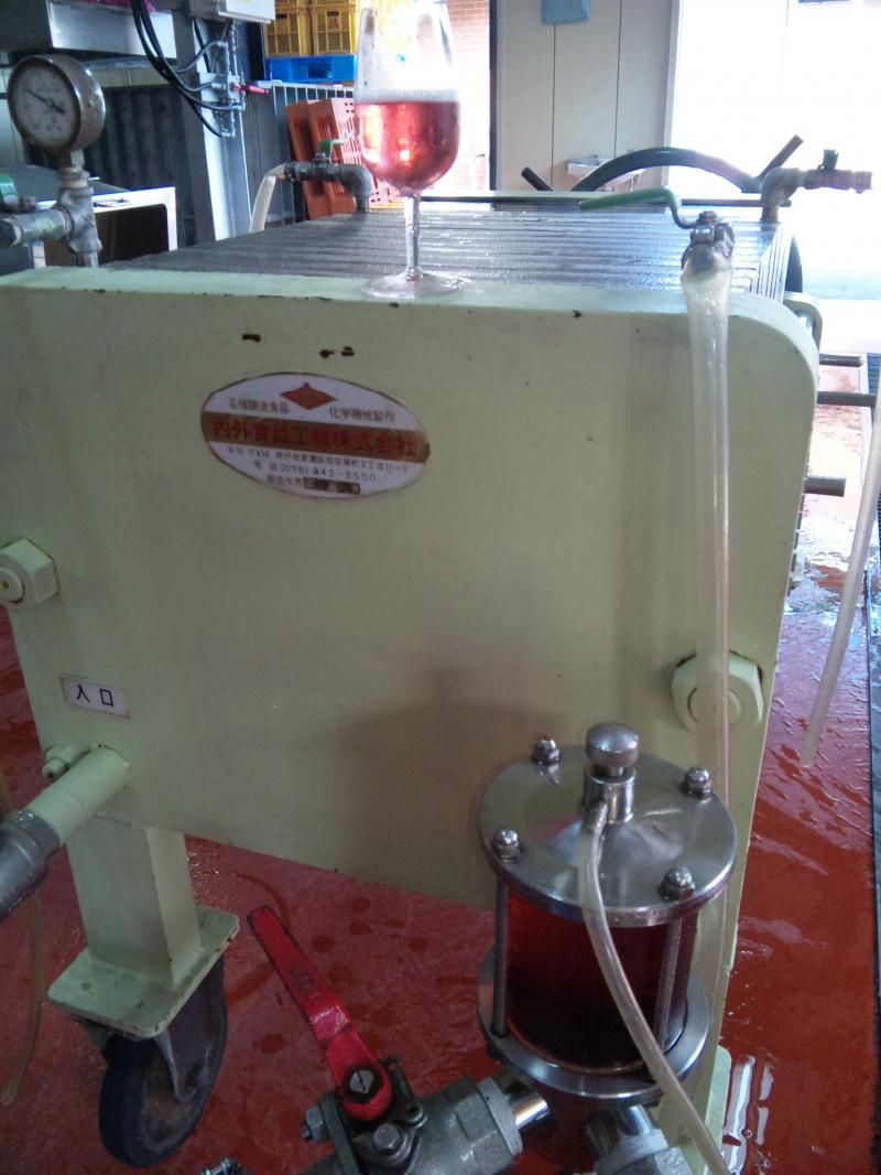 今日は、『赤湯ヌーヴォー2011(ロゼ)』になるタンクのワインを粗濾過しました。