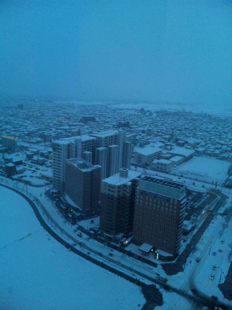 昨日、山形市で会合があったので、ちょっとその前に久々に霞城セントラルビル最上階である24階へ。高速エレベーターであっと言う間に到着。展望ロビーから山形市内が見渡せます。県内でも山形市内は雪の少ないところだげんと、さすがにこの時期は真っ白。夕方だったので薄暗くなっていたげんと、階下はどこまでも真っ白でした。以前、天気の良い昼間に同じ景色を見た時も感動した覚えがあります。
