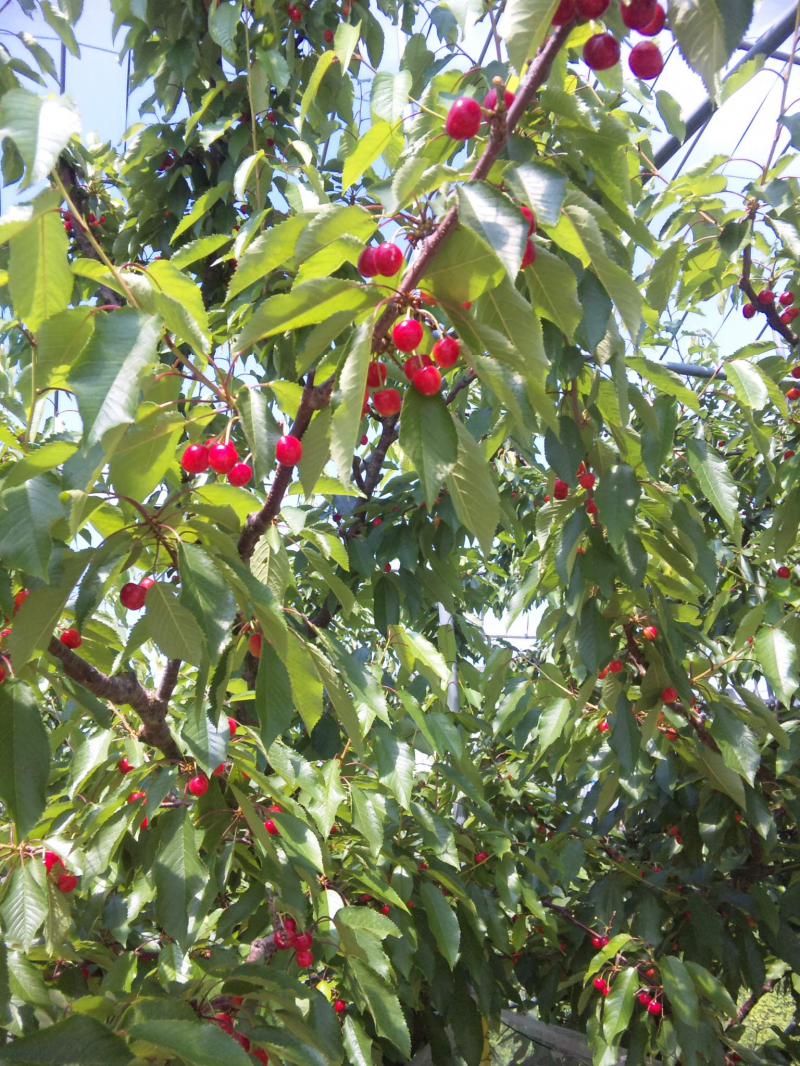 おらいでも今日、取引先の青果物屋さ行って、県外のお得意さんにサクランボの発送。画像はそこの園地の佐藤錦。真っ赤に色付いてまさに食べ頃です。