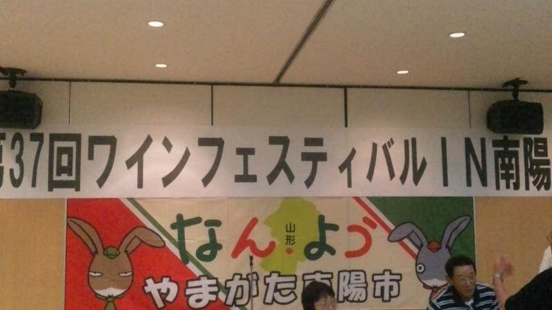 昨日の夜、赤湯のえくぼプラザで行なわれた『第37回ワインフェスティバルin南陽』。200名近いお客さんが来られて、赤湯4ワイナリーのワインを堪能して行かれました。この時期にするのは初の試み。各ワイナリーのブースに、お客さんがグラスを持って並んで、開会から閉会まで途切れることなく、かなり忙しい今回のフェスティバルでした。ご来場どうもおしょうしなっし。