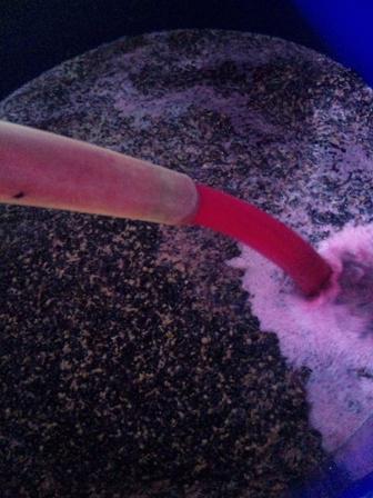 赤ワイン仕込みは色を抽出するのと雑菌の繁殖を防ぐ為、毎日、醪を攪拌するポンプオーバーを言う作業を行います。画像は昨日仕込んだマスカット・ベリーAの発酵液。1日目なので、まだ果皮からの抽出が少ない為ピンク色しています。少〜しアルコール出でっぺげんと、ほとんどジュースのような感じです。