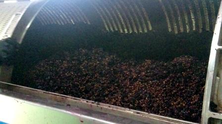 プレス機に入れて搾ります。ブラック・クィーンは濃いので、いい色気のプレスワインが出てきます。