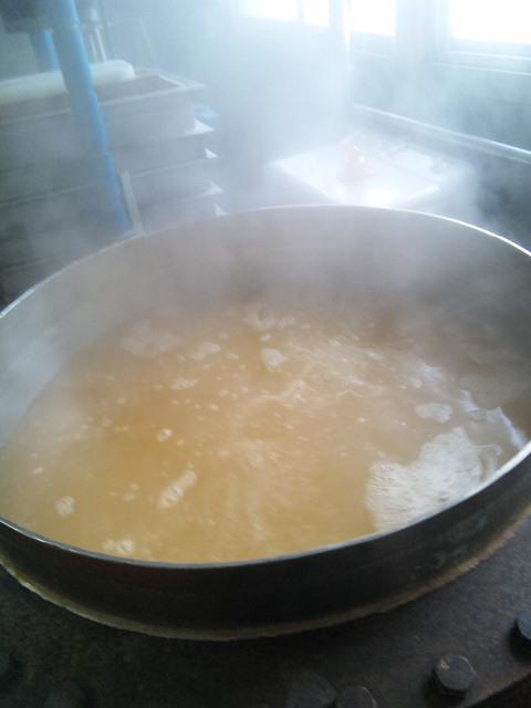 今日は大口分と、おらいのリンゴジュースを瓶詰め。画像は搾った果汁を二重釜で煮て、灰汁取りと殺菌。その後瓶さ詰めてラベルを貼ります。
