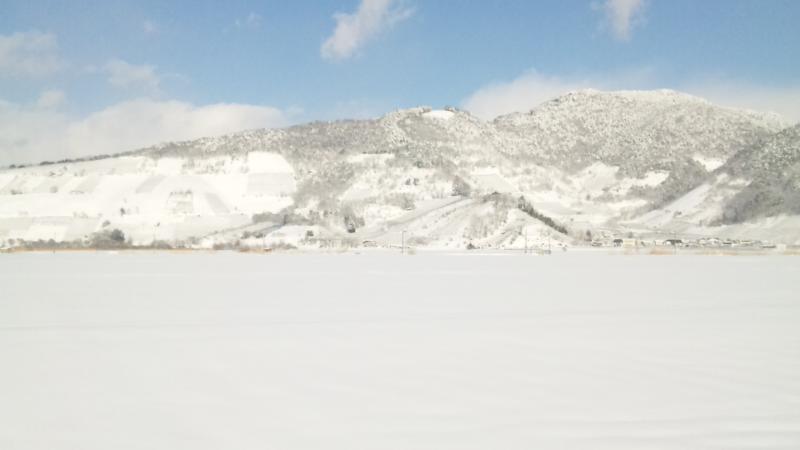 ハンググライダーとぶどうで有名な赤湯の十分一山です。おらいの松沢貯蔵庫さ行く途中この山を見ながら通っけども、今日晴れ間の景色がきれいだったので撮影。晴れて澄んでないと今の時期、遠くからはなかなかきれいに見えないのでナイスタイミングでした。