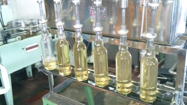 シャルドネをジュースにすんの初めてだげんと、昨年搾ったシャルドネのストレート100%ジュースを濾過して瓶詰めしました。本来はワインにするぶどうだげんと、昨年予定より少し量が多かったので、完熟したシャルドネの極一部をワインにすねでジュースにしました。