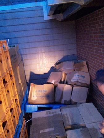 雨の降る中、また暗い中フォークリフトのライトを頼りに、家の者で21時位までかかって瓶の入れ替え。濡れた段ボールからP箱に移し替えたり、割れた瓶の片付け。