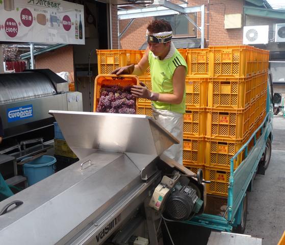 お盆も忙しく終わり、クタクタのまま後半戦に突入(+o+) 2回目のデラウェア―でのワイン仕込みを行いました。今回は6トンの仕込み。うちのプレス機は最高3トンまでなので、午前と午後に分けて搾ることになります。この時期はさすがにあっついげんと、デラの季節は好きです。