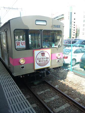 一昨日、お隣福島に行き『Con Vin Wine 列車』に乗車してきました。福島駅から出ている飯坂線ですが、この日限りの列車です。ワイン好きの方がグラス片手に乗車しました。福島だけに新鶴シャルドネのスパークリングワインでまずは車内で乾杯!