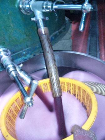 赤ワインでは今年最後の仕込みになるカベルネ・ソーヴィニヨンのポンプオーバーが終わり、タンクからワインを引き抜き違うタンクへ。種が吞み口に一杯詰まって、ちょっと難産だったげんと無事終了。去年は薄い色のカベルネのワインになってしまって、今年は昨年の失敗を教訓に仕込み方法を若干変えました。