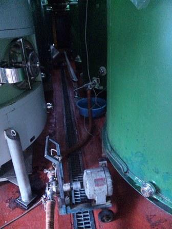 タンク下部。徐々にワインが少なくなり、澱が出てきます。