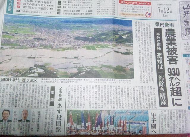 山形新聞に載っている写真は今の赤湯。街や田畑なども広範囲に渡り浸水しました…