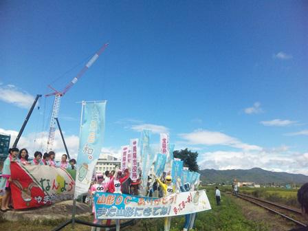 山形デスティネーションキャンペーンも本日9月13日で終わりになりました。最終日の今日、南陽市役所駐車場に集まりノボリを持って新幹線に笑顔で手を振ってきました(^_^)/