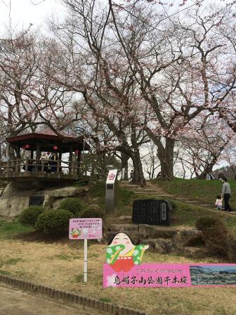 今日現在の烏帽子山公園です。ガイドさんの話しだと、桜は三分咲き位。この調子だと来週末あたりが見頃だべが?でも、芽の段階で今年は鷽に食われたとのこと(*_*)