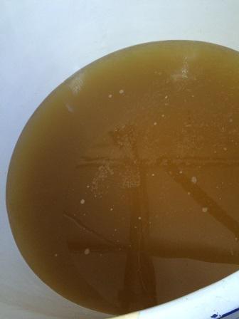 上澄みを移動させ残った澱。搾って酒粕状にします。