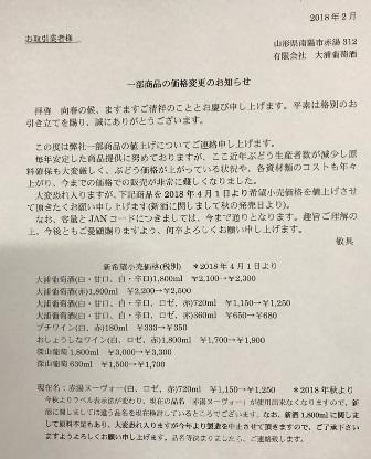 大変恐れ入りますが、下記商品を2018年4月1日より希望小売価格を値上げさせて頂きます(新酒に関しまして秋の発売日より)。
