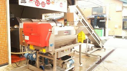 エレベータコンベアで投入。今日は約4トン仕込みました。