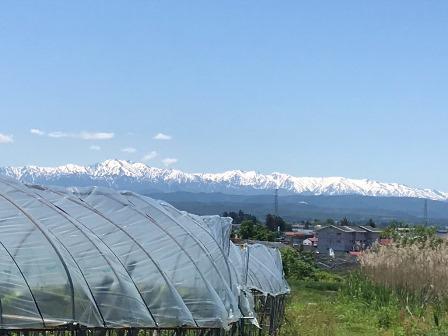 今日も半日、畑の草刈り。天気が良く、残雪がきれいな飯豊連峰がはっきり見えます。作業途中見ると、気分転換になります。
