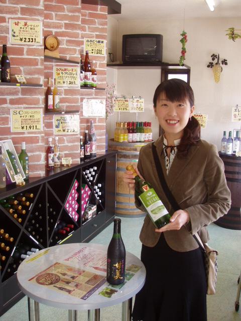 彼女の好きなおらいのワインは、『セイベル』と『甘美』だそうです。そのワインを持って、モデルになってもらいました。