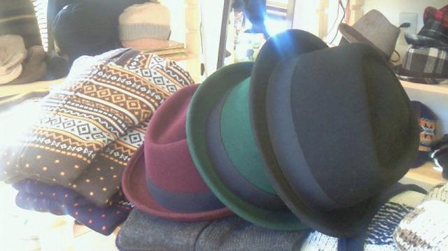珍しいグリーンとワインレッドのカラーがあるハット!