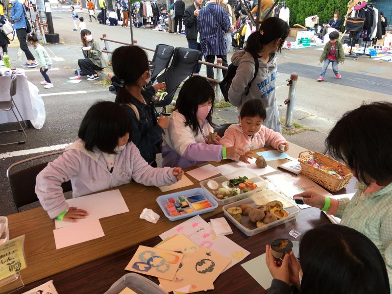 た。内容はレインボー野菜の直売と、野菜スタンプでカードを作る子ども向け