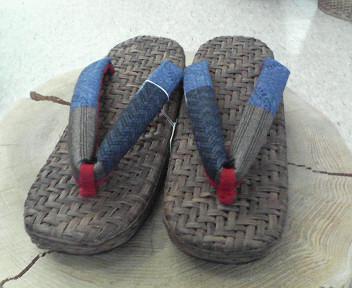 桐の下駄に山ぶどうの皮を手作業で編んでいます。