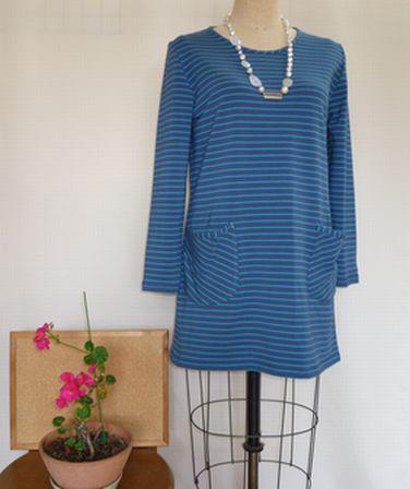 春らしくさわやかにブルーのボーダーでチュニックです。