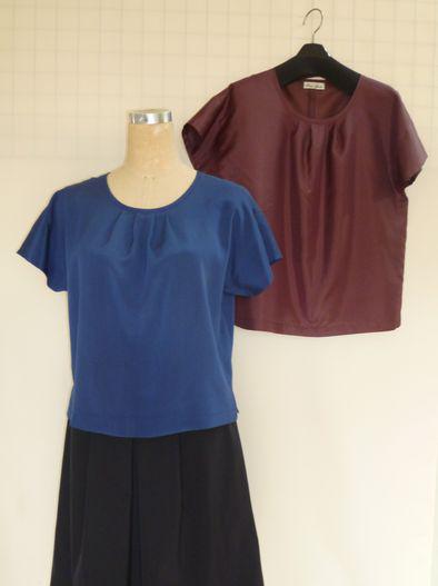 胸元にタックをとって丸衿にして袖はフレンチ袖に仕上げました。