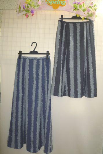 デニム地にギンガムチェックのスカートです。