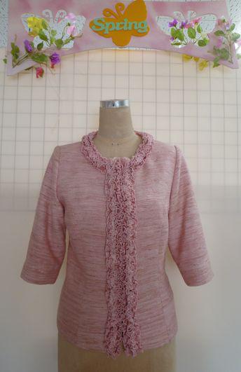 春らしくさくら色のジャケットですね。