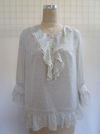 ドット柄(水玉)のシフォン素材でしなやかな仕上がりのブラウスです。