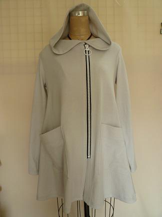 衿はフード風に大きめにしてあり、ファスナーを見せることでアクセントにも