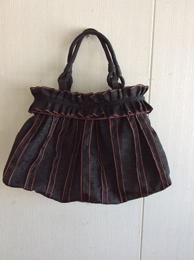 地模様の黒に赤の畳へりを使ってストライプにし、入れ口のフリルが