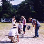 巻き尺片手に、炎天下の記録測定はとても大変です。大きな麦わら帽子はかかせません。今ではすっかりおなじみのスタイルとなりました。(2000〜)