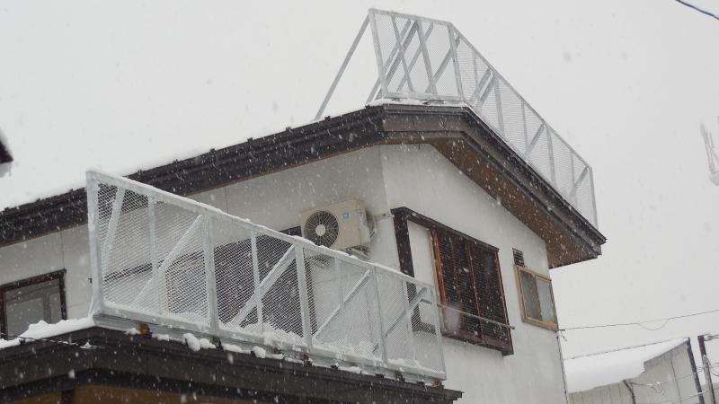 雪国米沢では珍しくない屋根上のネットフェンスです、