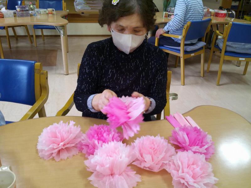 あゆみ通所でも、フロア内に桜を咲かせよう!ということで、花紙でたくさんの桜の花を制作中です。