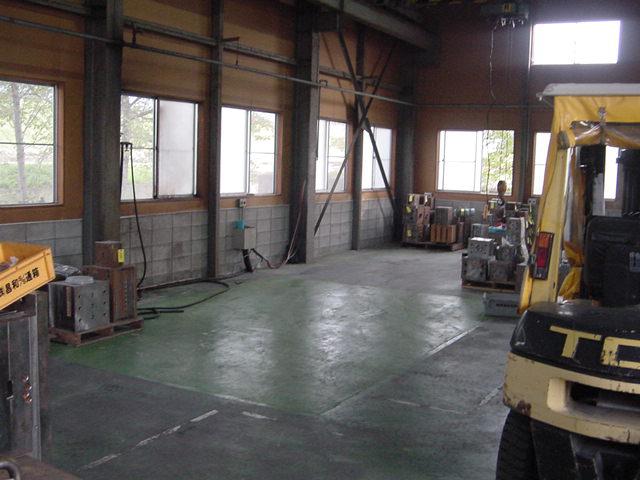 もともとは当社のプレス部門で使っていた工場で、200tのプレスマシンが設置されており、他にも小さなプレス機械が入っていた場所です。なので基礎もしっかりとしているし、天井クレーンもある。