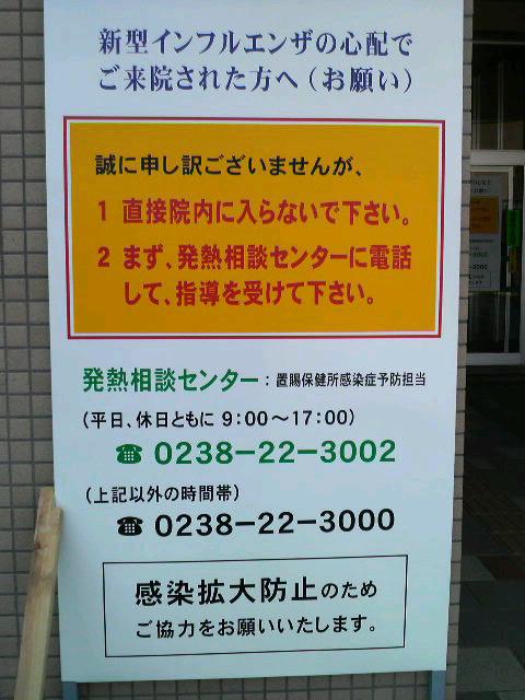 ◎ 件の看板。インフルエンザはうつしちゃいけないけど、なんだか心細いよね。