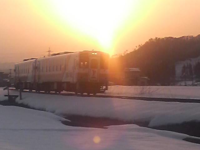 ◎ 雪原を疾走するフラワー長井線。わたしの旅はこの列車から始まります。