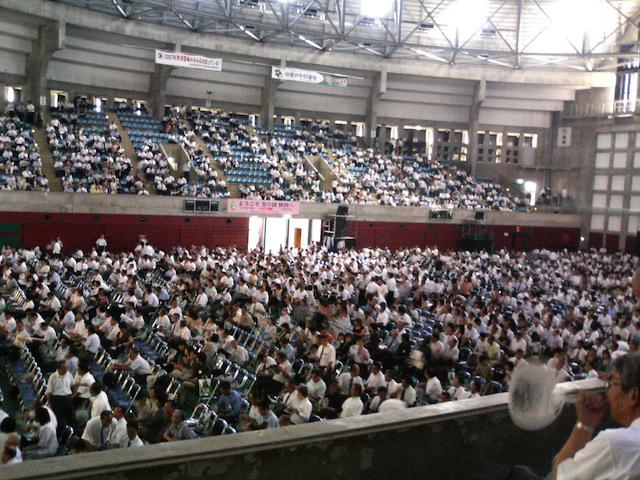 略して「全国高P連」の大会です。今年は秋田県で開催されました。日本全国からおよそ1万人が集まります。会場の秋田市立体育館は超満員。暑さでうだります。配布資料と一緒に「うちわ」も配布されましたが、1万人が一斉にうちわで扇ぐと気流が生じているような気がします。今回の要旨は「今後の子供たちにとって大変なのは、非常に高度な先端的技術を身につけてゆく必要がある。」「もうひとつのアジェンダ(目標設定)を持つことが必要だ」そうする事により日本は21世紀のモデル国家として発展してゆくであろう。と言うような内容でした。我々が過ごしてきた時代よりも、今の子供たちに要求されている内容というのは随分と高度な事だなと感じました。そういいながらも、我々も子供達がそういう勉強が出来るような環境作りや、その手本と成るべきと改めて身の引き締まる思いです。我々企業も基本は人間です。将来を担う子供たちには是非とも伸び伸びと勉強して育って欲しい。そう感じた総会出席でした。PTA活動は全くのボランティアです。でもその先々で出会う事、仲間が増えること、これは大きな役得と思っています。本業を脅かすようでは話しになりませんが、完全な異業種交流です。なんでもがむしゃらにチャンスに変えてゆきたいと思います。