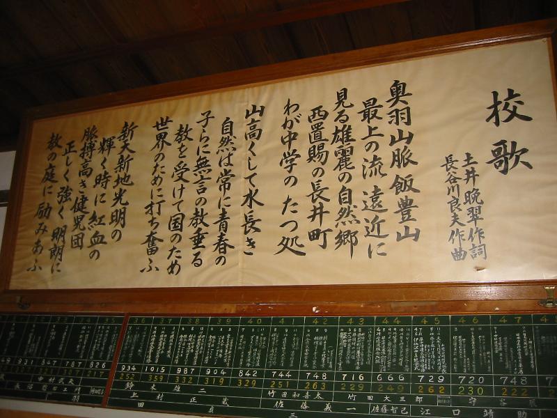 「長井中学校」の校歌の額です。かなり懐かしいと思われる方がいらっしゃると思います。